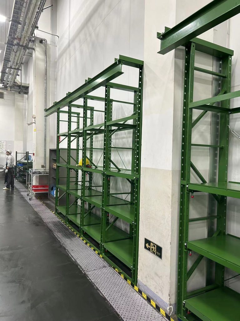 今天去無錫安裝了綠色的半抽模具架,客戶早早就把安裝空地整理好了非常配合