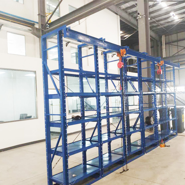 存放大于1000KG以上的模具,都是用博儲(chǔ)全抽模具架,重量大的模具,體積也是比較大的,吊裝存取的時(shí)候,為了安全都會(huì)把整個(gè)層板全部抽出,再存取。